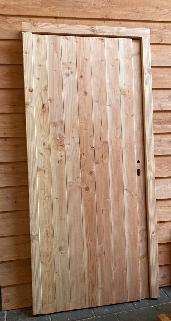 Deze onbehandelde Douglas enkele deur is een robuuste en stijlvolle keuze voor de afsluiting van uw buitenverblijf, met een buitenwerkse kozijnmaat van 95 x 203 cm. Met een stevige dikte van 4,8 cm biedt deze volledig dichte deur maximale privacy en een solide uitstraling. De deur is vervaardigd uit hoogwaardig Douglas hout, wat zorgt voor een natuurlijke en duurzame look.